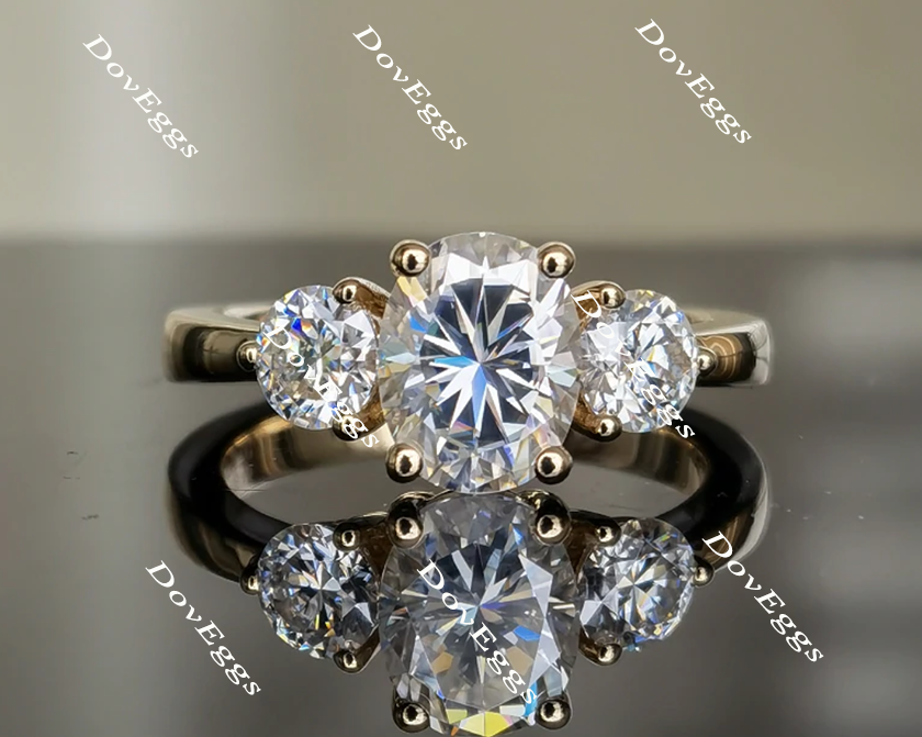 Oval three-stone moissanite engagement ring for women| DovEggs