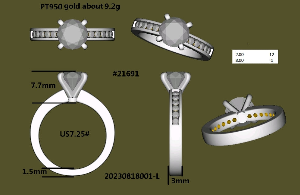 Matching band in 2mm Lab Grown Diamonds Solid Platinum Size 7.25