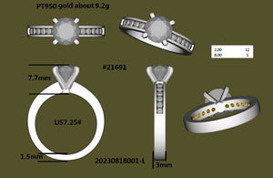 Matching band in DEF Oval moissanite, platinum setting, Size 7