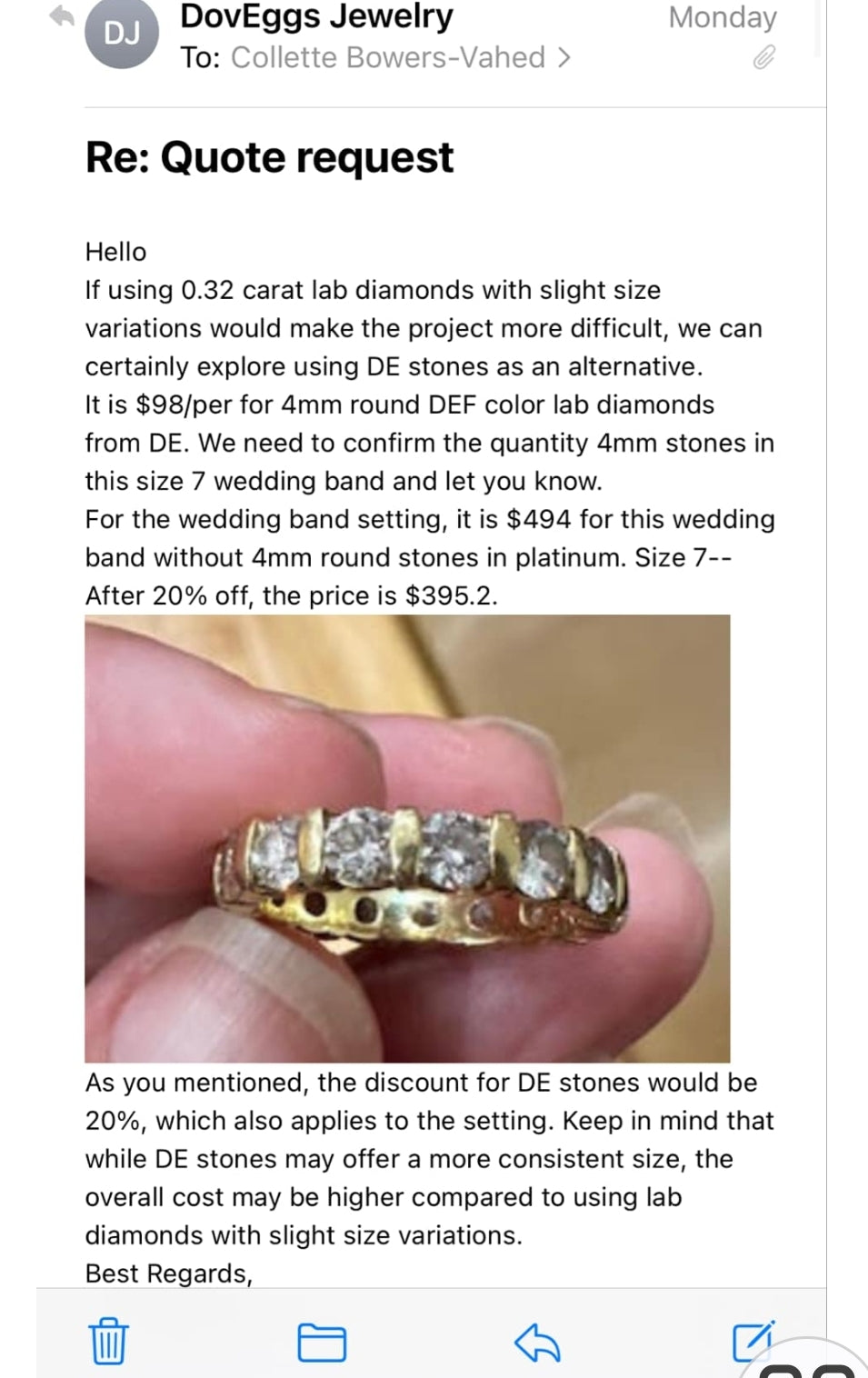 Semi-Mount Custom Payment link for Beth Size 7.5