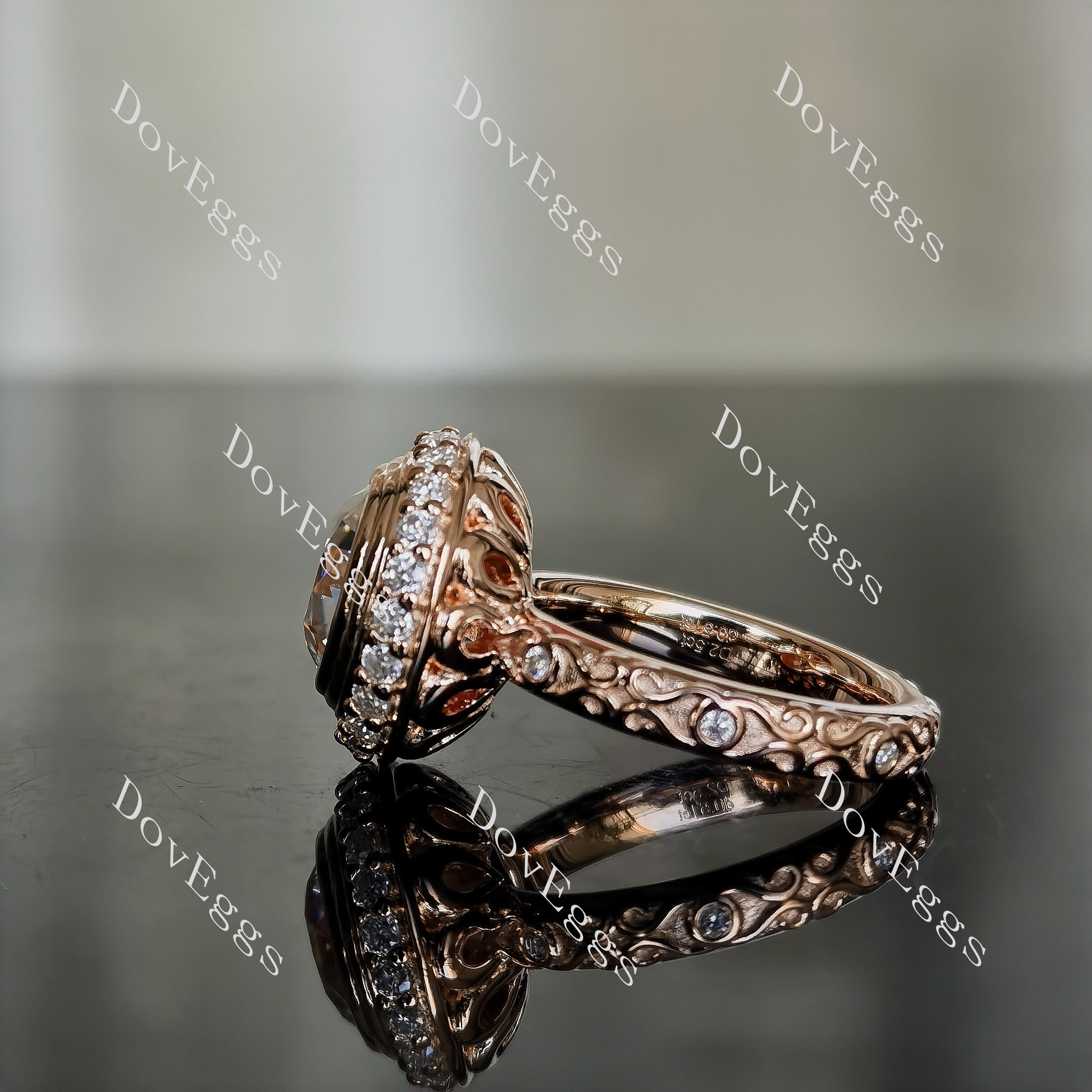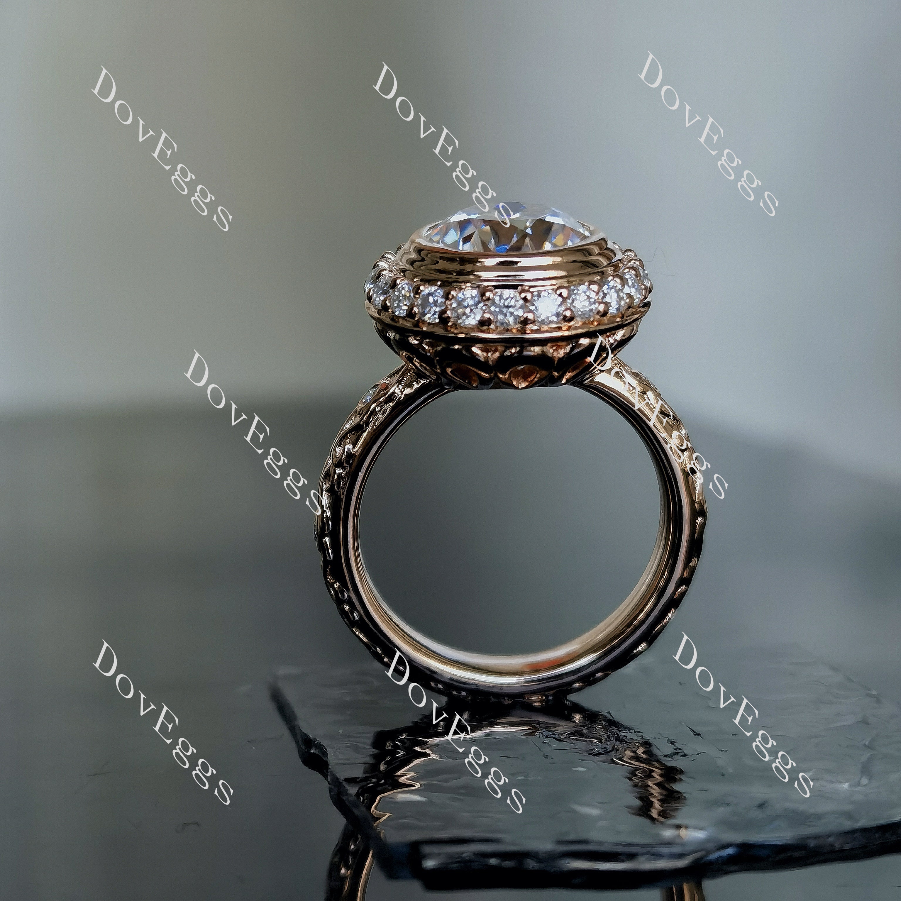 Doveggs round art deco vintage moissanite engagement ring