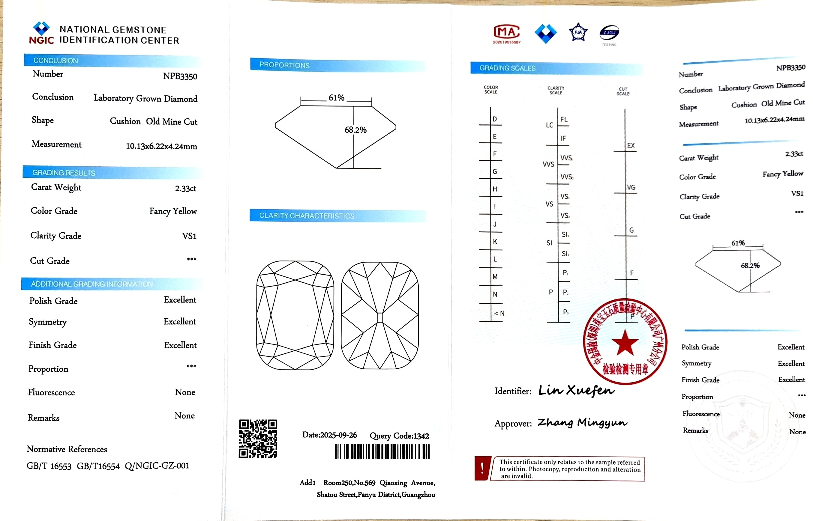 NGIC Certificate #: NPB3350(We will ship the lab-grown diamond to you along with the NGIC certificate. You can scan the barcode on the report to access the third party certificate.)