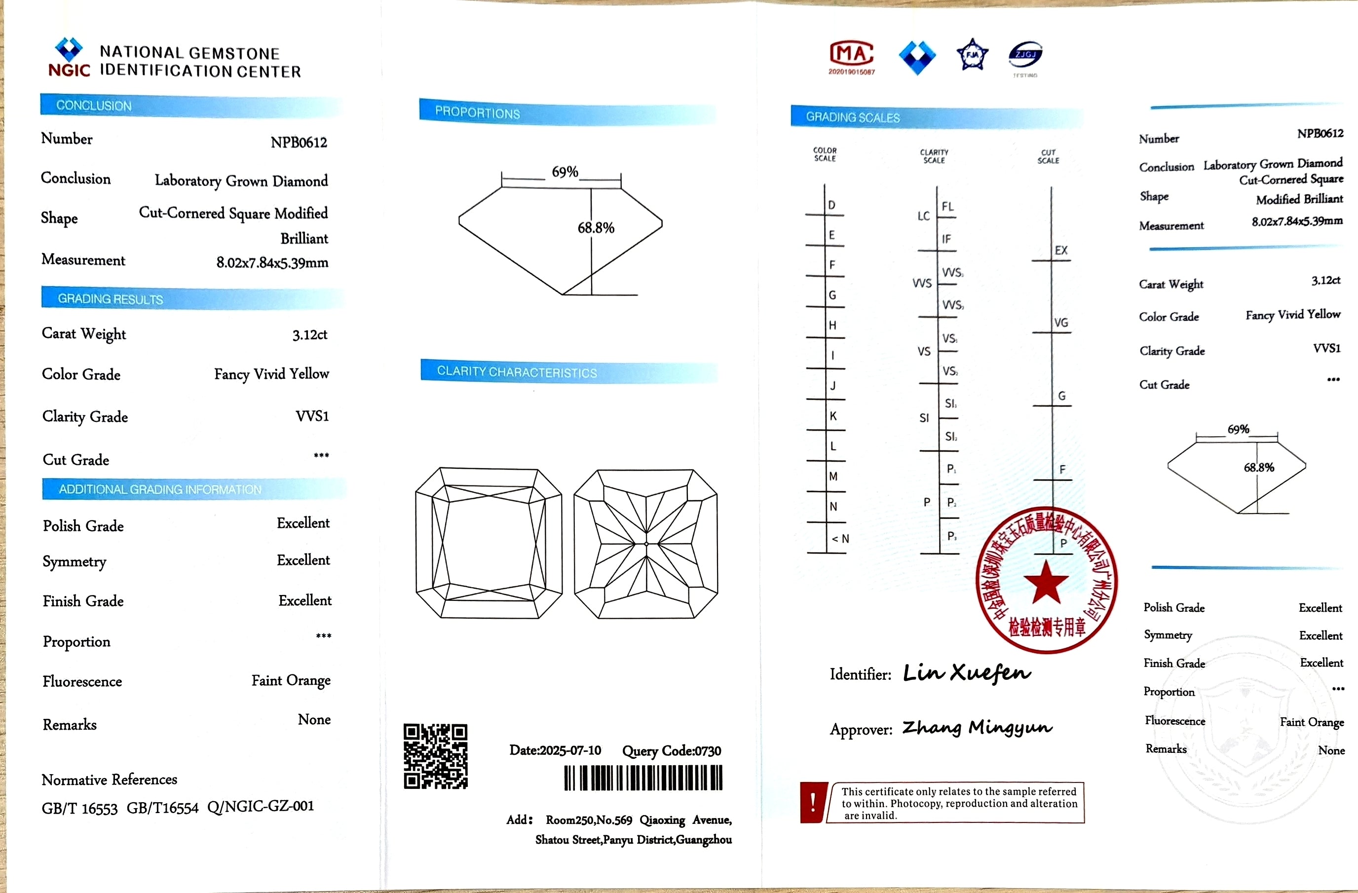 NGIC Certificate #: NPB0612(We will ship the lab-grown diamond to you along with the NGIC certificate. You can scan the barcode on the report to access the third party certificate.)
