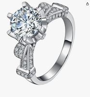 $998 for this ring with 3ct(9mm) GHI color round moissanite center, with moissanite accents in 14K white gold. Size 7