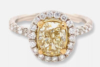 $899 for this 8.99 x 6.45 x 4.5mm oval center, with all 2.3mm round lab grown diamond accents in 10K yellow gold prong/bezel and 10K white gold band. Size 6