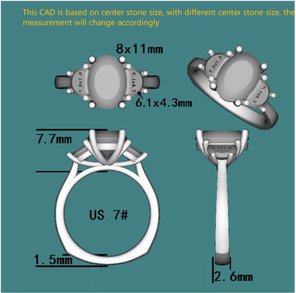 Center stone of picture is 1ct(5*7mm) GHI color oval Nova cut DovEggs moissanite. Accent stones are moissaintes.Ring setting is 10k white gold.