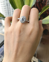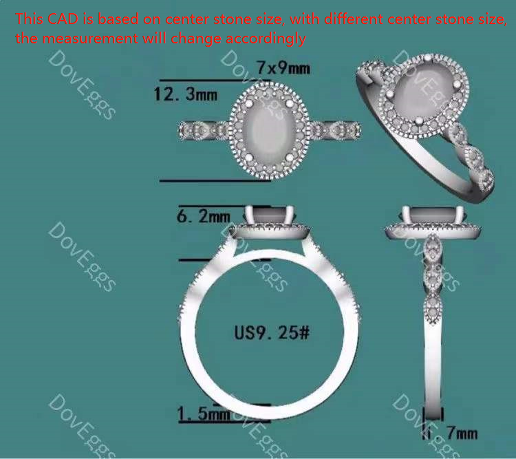 The center stone of picture is 1.5ct(5.5*8.5mm) elongated oval crushed ice cut  DovEggs moissanite. Ring setting is 10k rose gold.