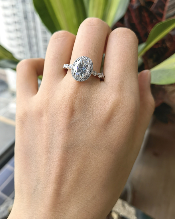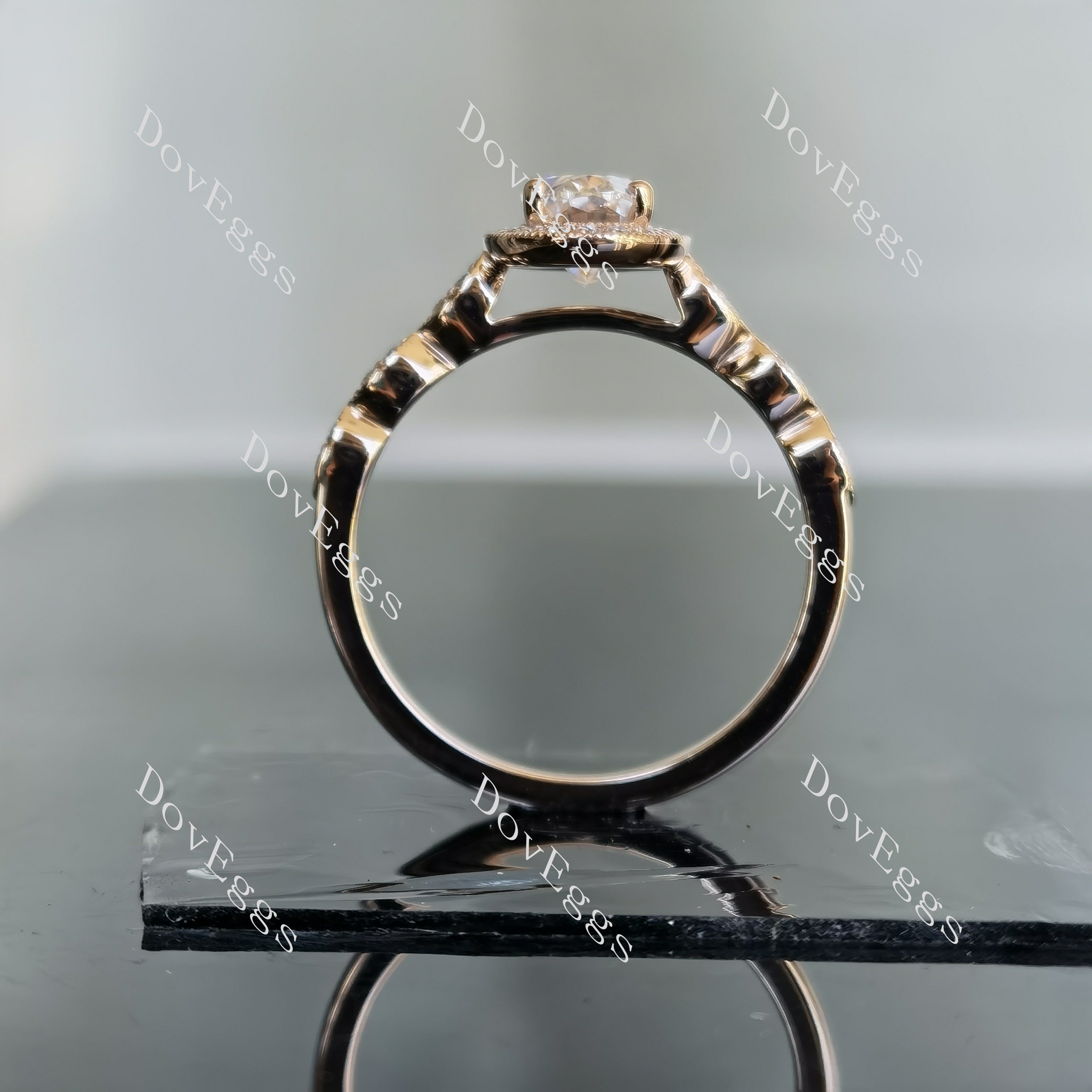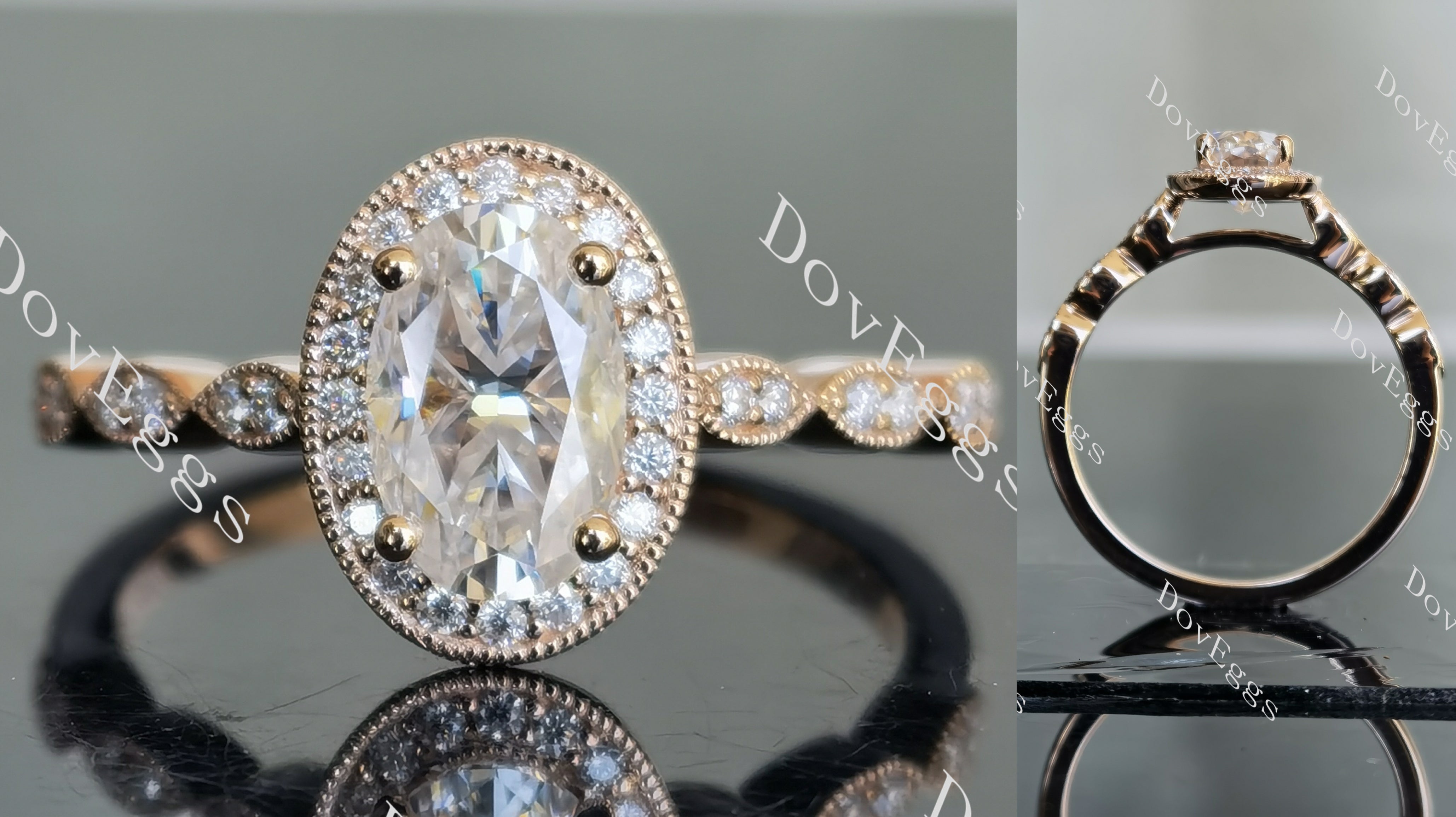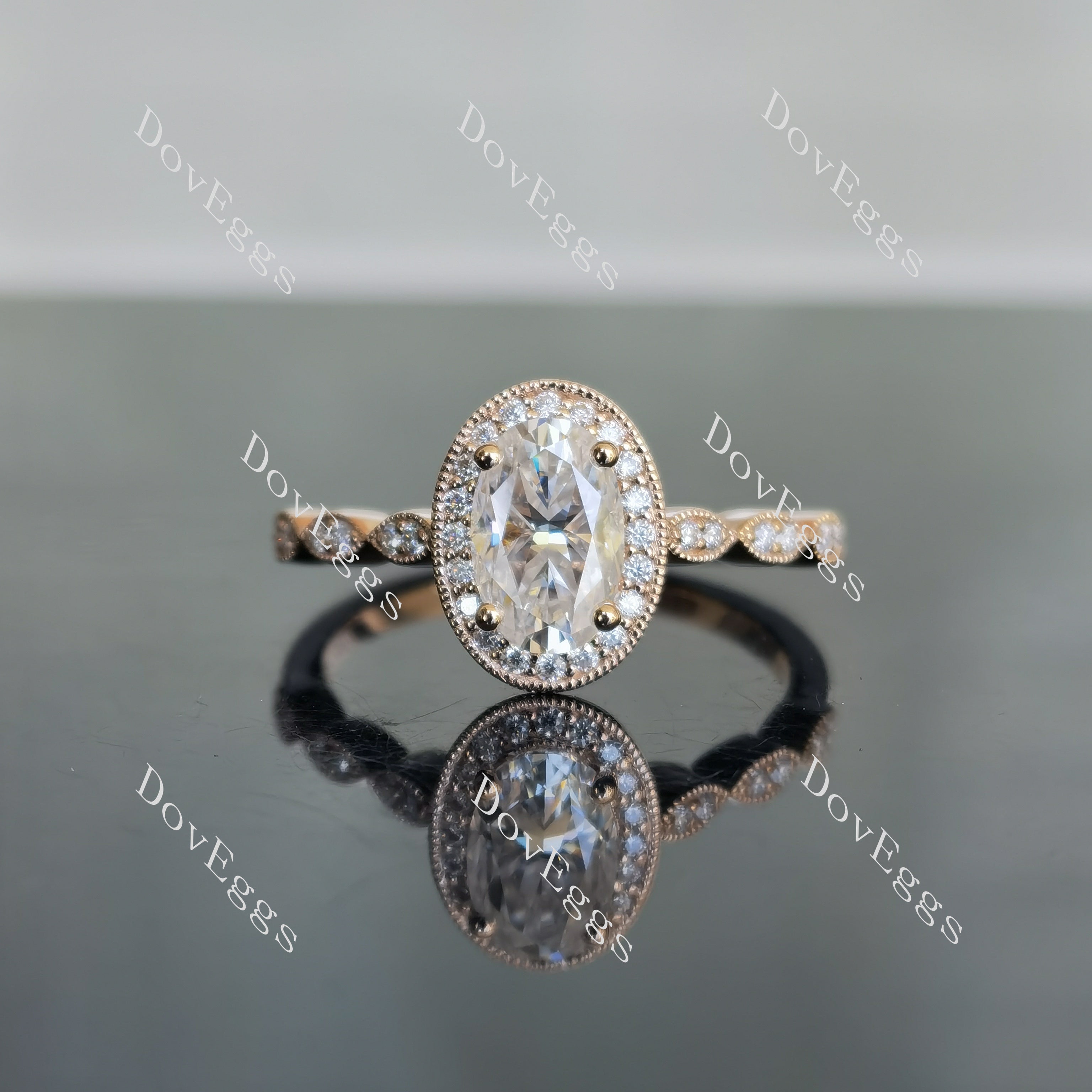 Oval art deco halo moissanite engagement ring| Doveggs – DovEggs-Seattle