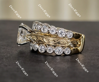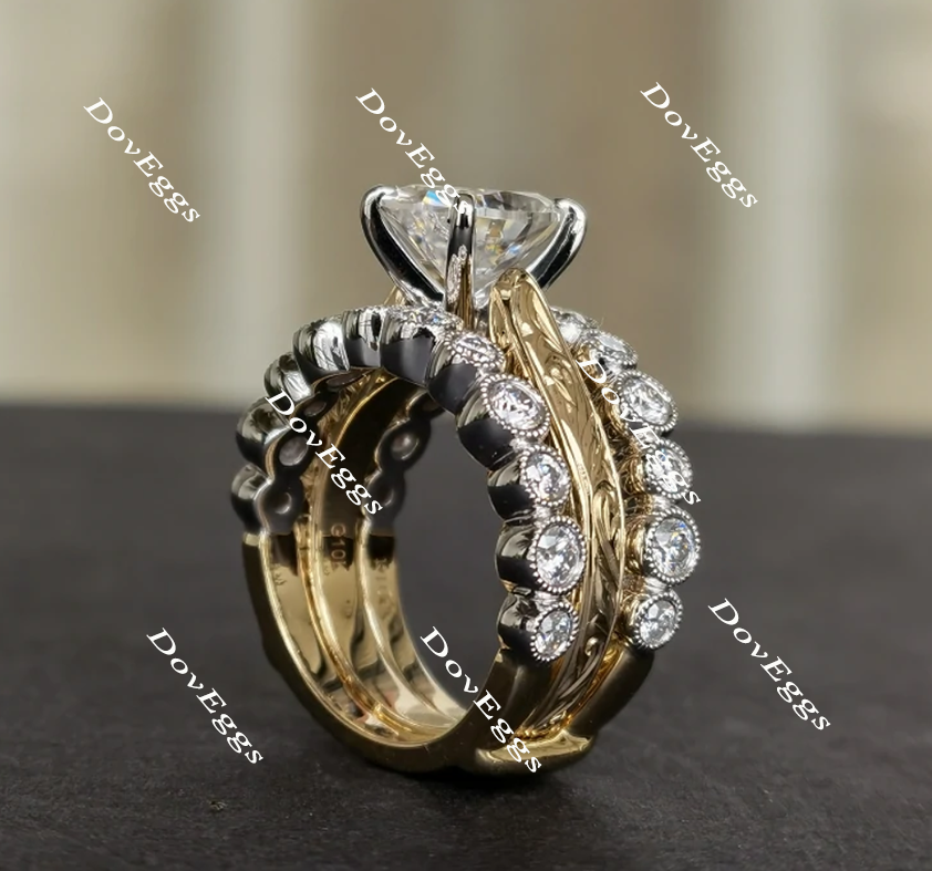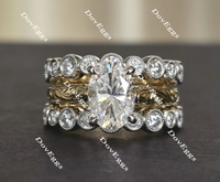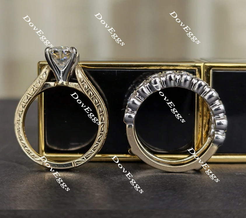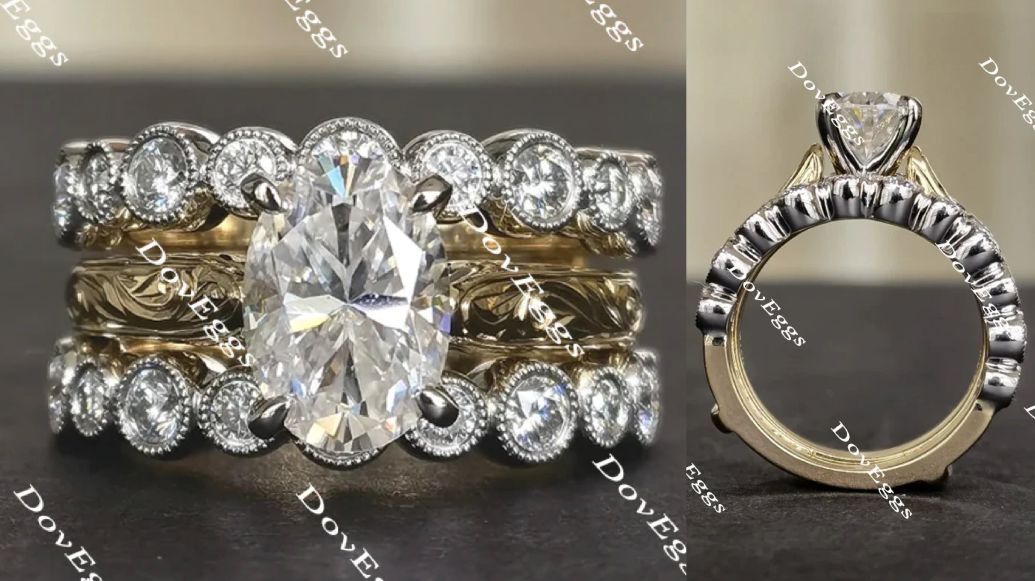Oval art deco carved moissanite bridal set (2 rings)| DovEggs