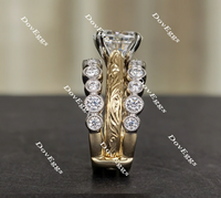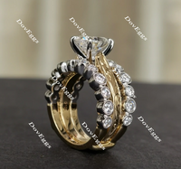 The center stone of picture is 2.5ct(7.5*9.5mm) GHI color astro cut oval DovEggs moissanite. Ring setting is 10k yellow/white gold.