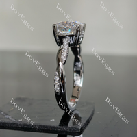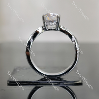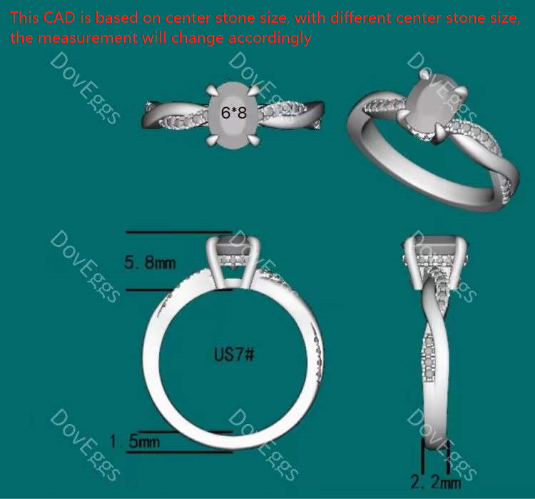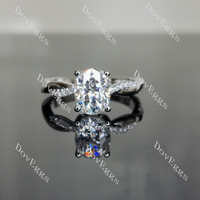 The center stone of picture is 2ct(7*9mm) Oval Nova cut DovEggs moissanite. Ring setting is 14k white gold.