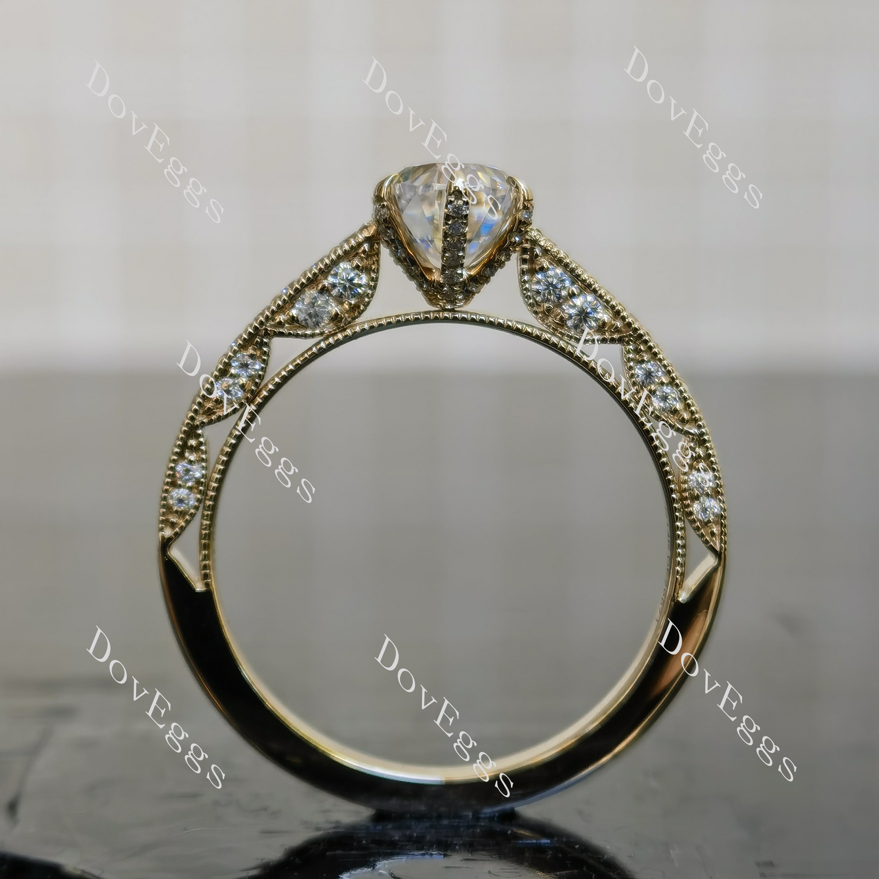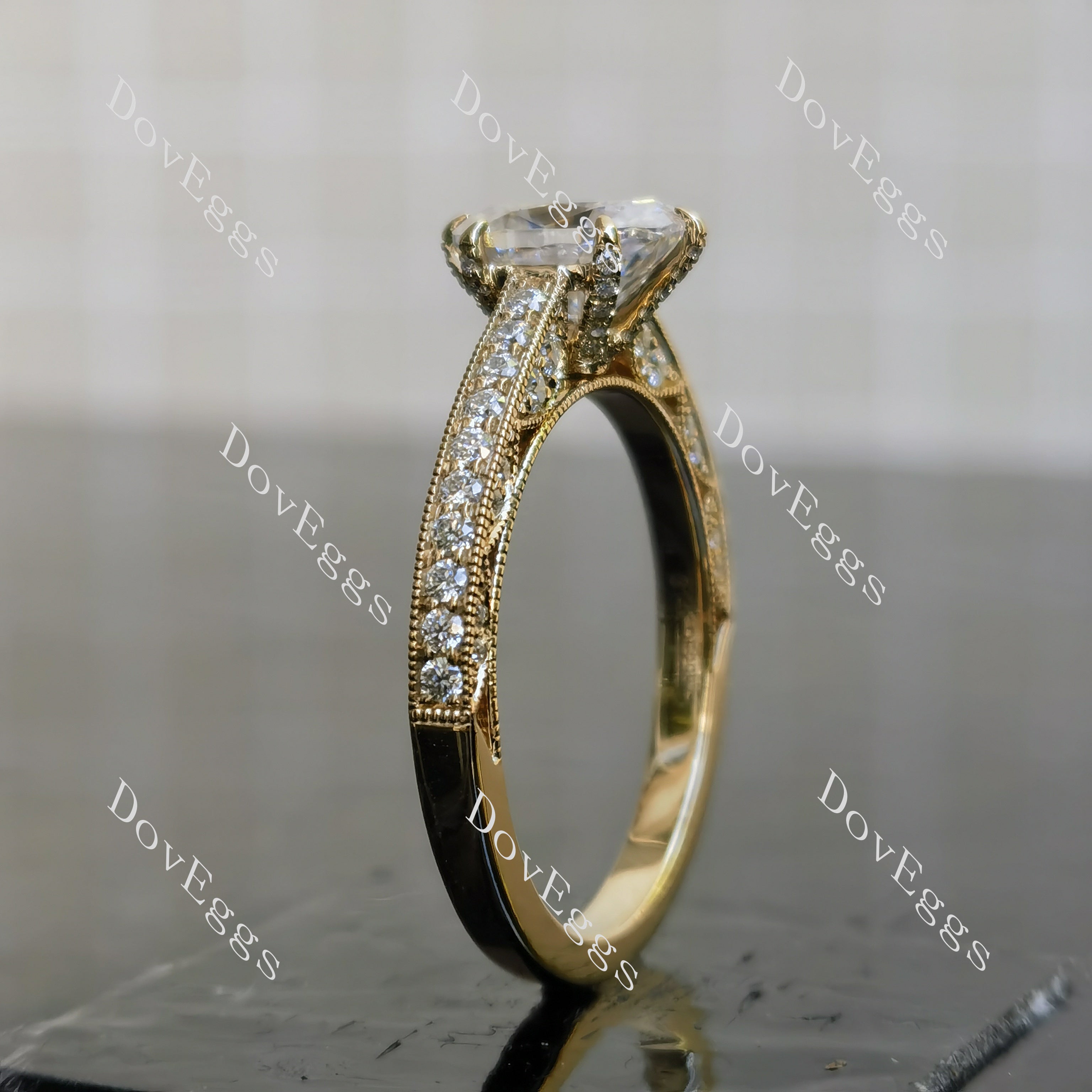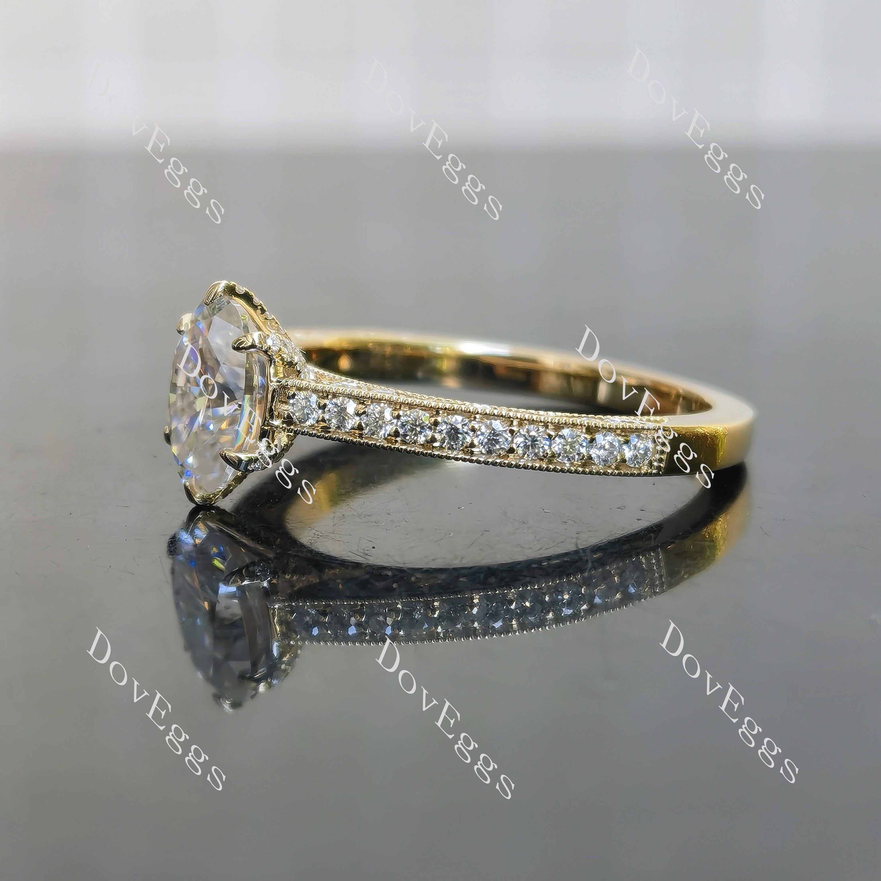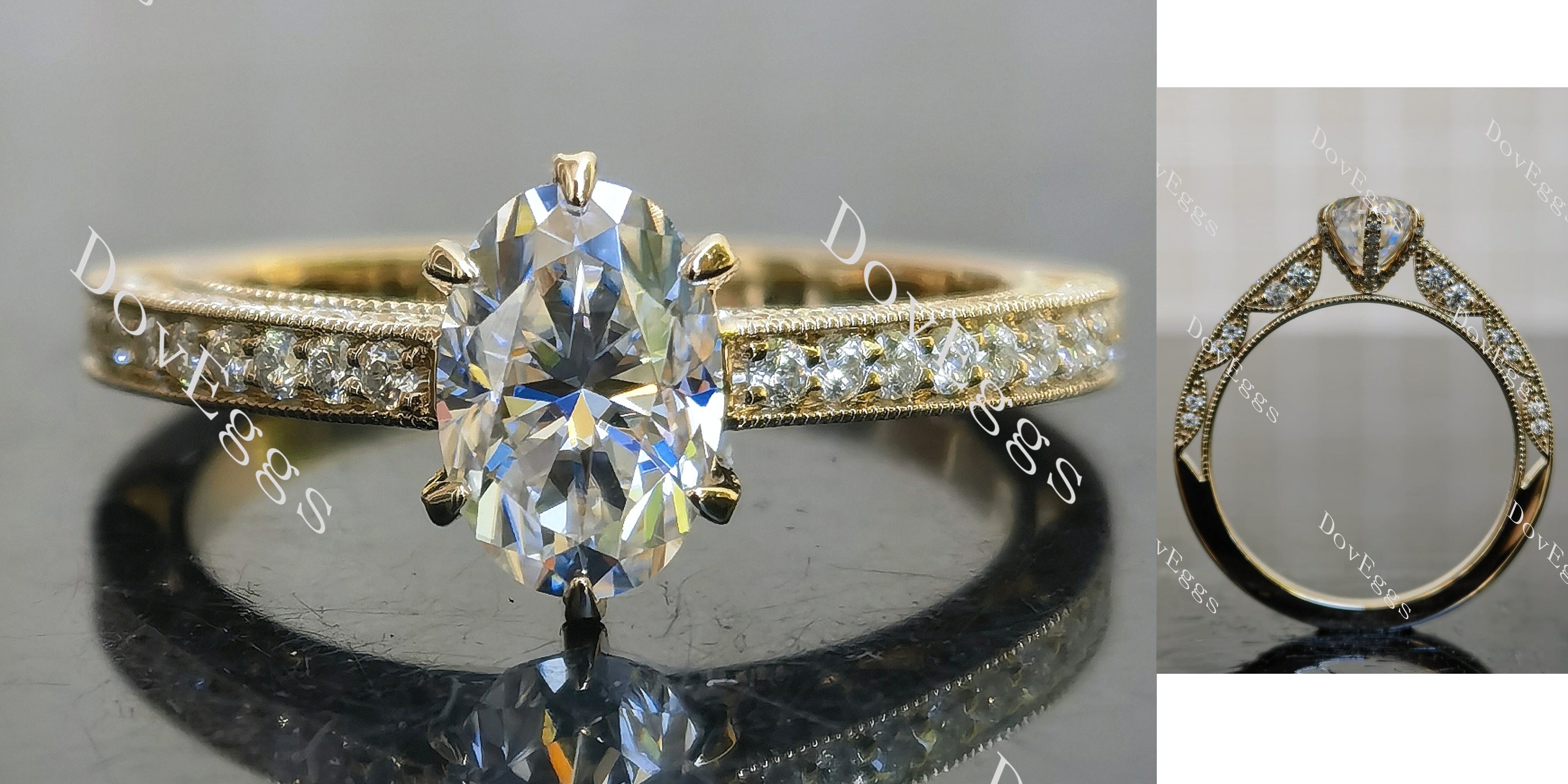 Oval vintage pave moissanite engagement ring| DovEggs