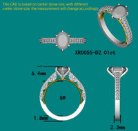 The center stone of picture is 2ct(7*9mm)ghi/def color Crown Arrow™ Oval Cut DovEggs moissanite. Ring setting is 14k white gold and yellow gold.