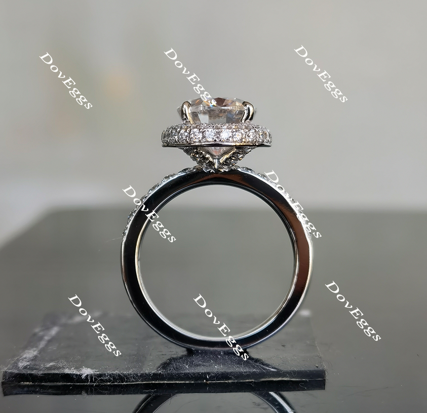 Oval halo pave moissanite engagement ring| Doveggs