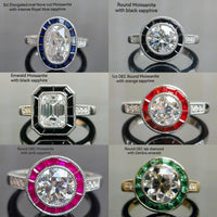 Center stone: 2ct(8mm), round Old Europe cut, GHI moissanite, VS1-VVS1 clarity