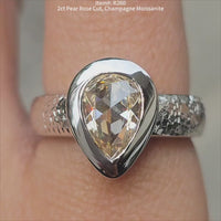 Center Stone: 1.5ct(7.5mm), round Nova cut, champagne moissanite, VS1-VVS1 clarity
