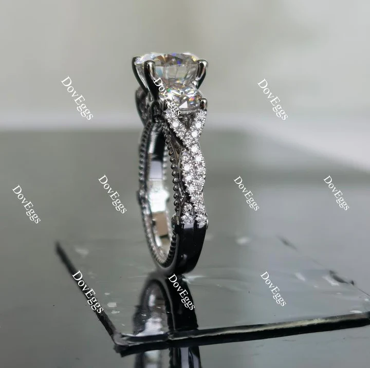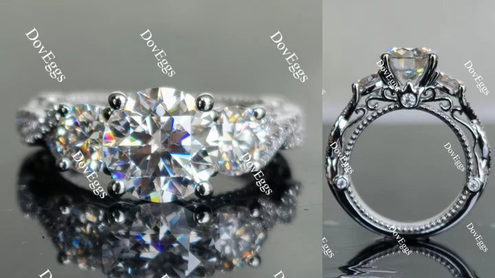 Accents: large round stone is about 5mm, can be Near Colorless/Colorless Moissanite Accents or Lab Grown Diamond Accents