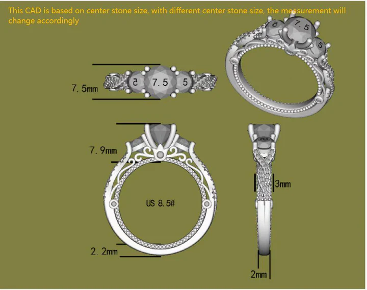 Center stone: lab grown daimond (can apply with all shapes)