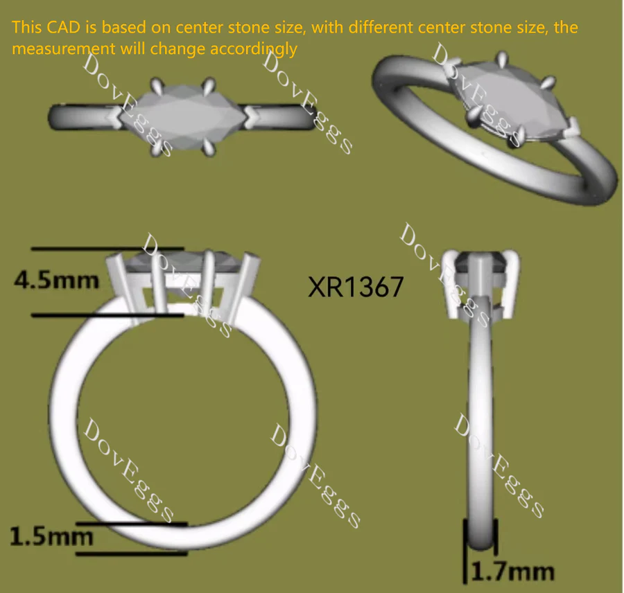 Center stone: can be moissanite or lab grown daimond (can apply with all shapes)