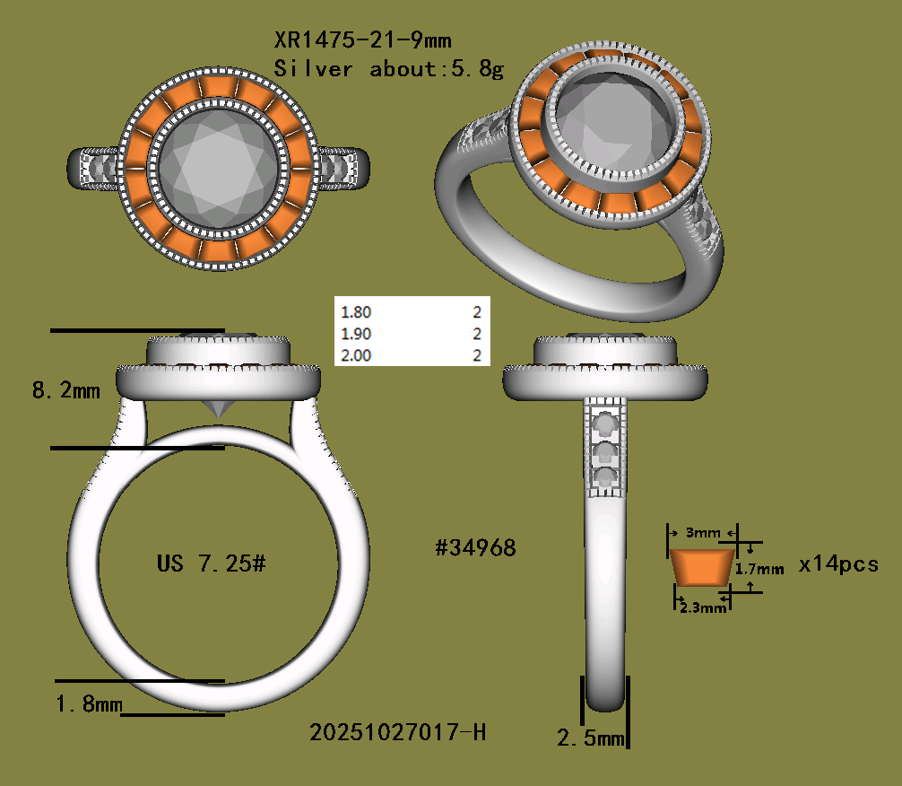 It is $328 for this XR1475 ring with 3ct(9mm)GHI color round rose cut moissanite center, orange sapphire accents in SS. Size 7.25.